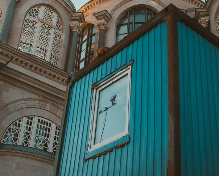Die Standardvariante ist „Sky“ – ein kräftiges, Bistums-Blau mit Verlauf in einen helleren Ton. Sie bildet die gestalterische Grundlage, auf der alle weiteren Varianten aufbauen.